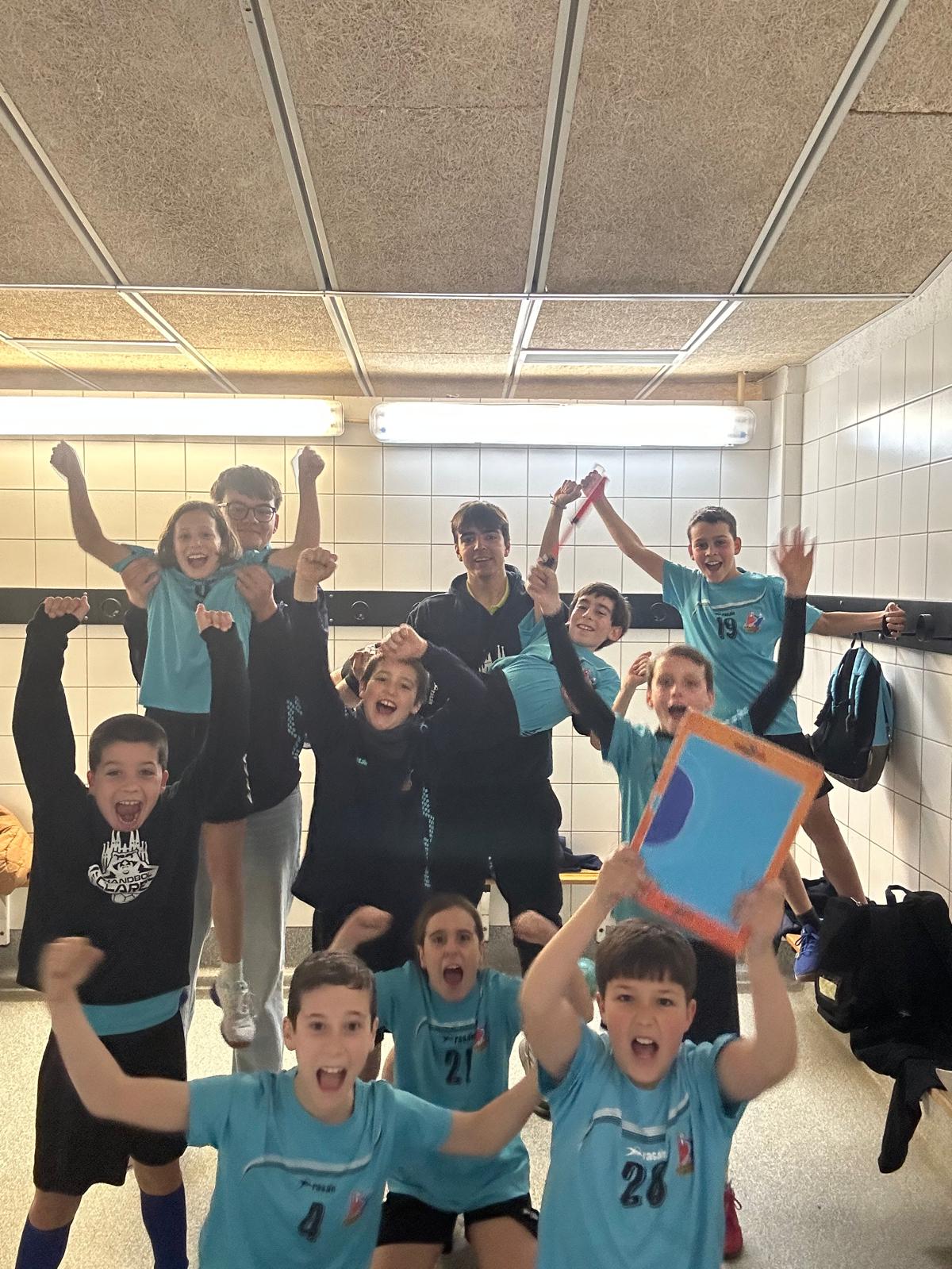 Gran partit de l’Alevi que malauradament ha acabat amb empat per una petita desconeccio als primers 5 minuts de la 4a part que hem hagut de remuntar en els últims 5min . Partit on en tot moment s’ha fet el que l’entrenador ha dit. Partit amb molts contraatacs y bones orientacions defensives que acaben en parades del nostre porter i hem fet faltes quan tocaba. Nomes ha faltat retallar els llençaments errats (22) i no desconnectar. Felicitar a tot l’equip pel partidàs